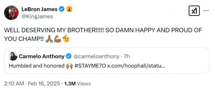 安东尼入选名人堂最终候选名单!詹姆斯:实至名归 为你感到骄傲