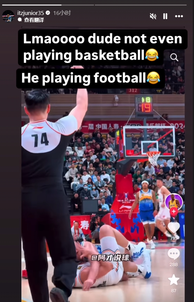 洛夫顿更新INS吐槽了CBA的犯规,随后再次点名艾孜麦提,写道:“笑死我了,这哥们就不是来打篮球的????,来打橄榄球的吧。????”