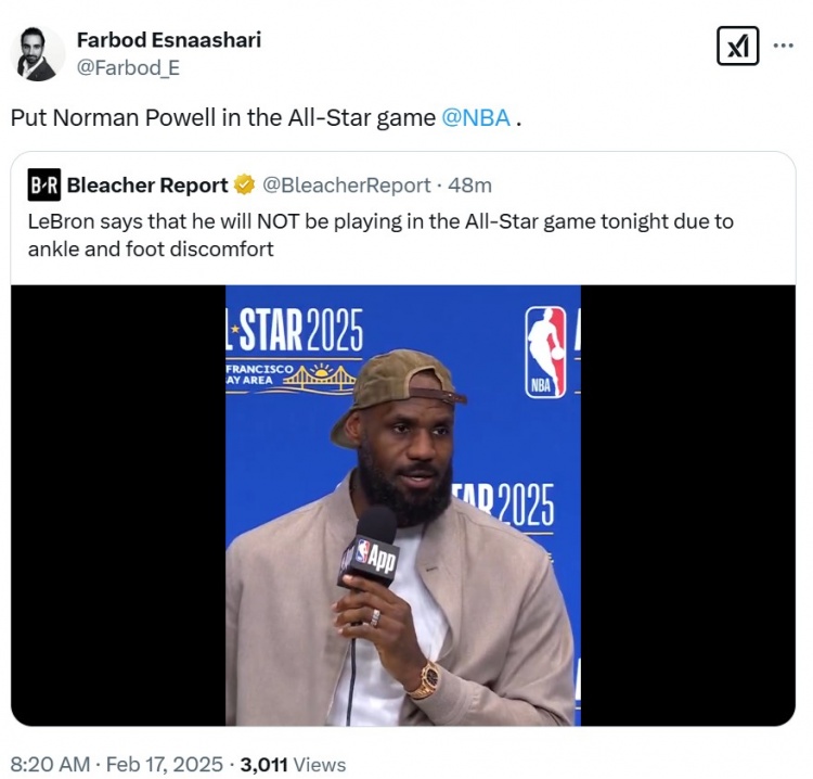詹姆斯临时缺阵!船记直接喊话NBA官方:让鲍威尔进全明星吧