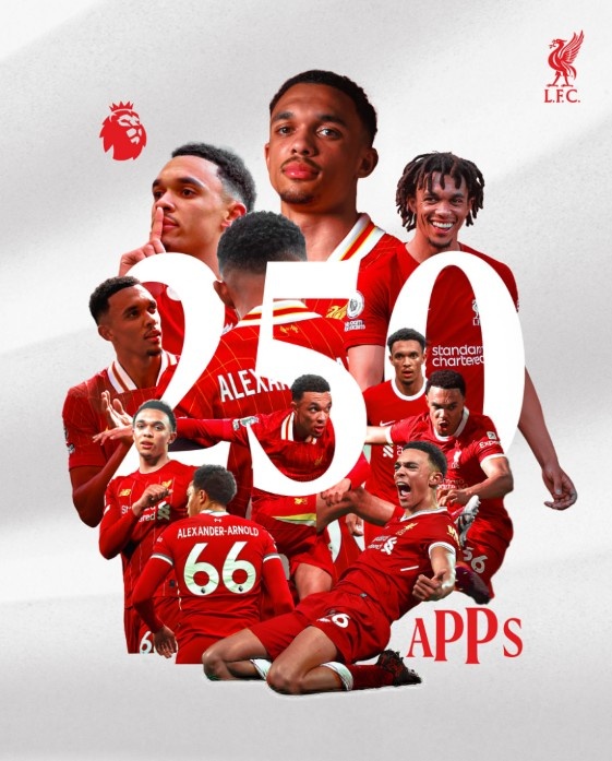 据利物浦俱乐部官方数据统计,这将是阿诺德出战的第250场英超联赛,他们在社交媒体上晒出海报,并配文写道:“阿诺德250场英超里程碑”,以向球员表示祝贺。