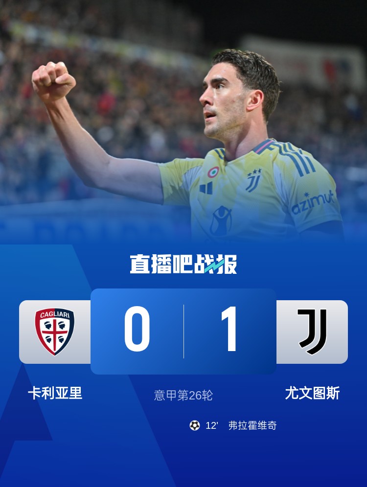 意甲第26轮,尤文1-0卡利亚里,联赛4连胜。上半场,弗拉霍维奇过掉门将小角度破门;下半场,坎比亚索伤退,替补出场仅20分钟的道格拉斯-路易斯也伤退。