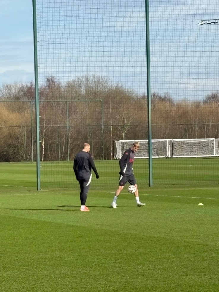 3月5日讯 在欧联杯1/8决赛首回合客战皇家社会赛前,记者Steven Railston报道了曼联的训练情况。加纳乔&多古参加了训练,马奎尔和乌加特缺席。