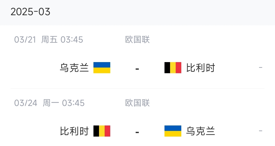 3月份国际比赛日中,比利时将在欧国联A联赛升级赛中迎来与乌克兰的两回合比赛,比赛时间为3月21日和3月24日,比利时先客后主。