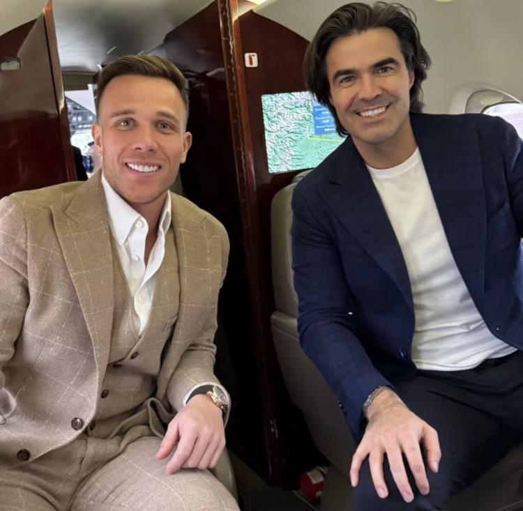 2月1日讯 记者斯基拉晒照,阿图尔和经纪人飞往西班牙。